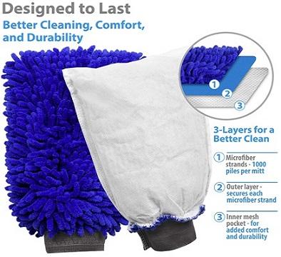 * The high-density microfibre fingers in the washing gloves provide optimum cleaning performance, while microfibre twist retains dust and dirt without scratching.