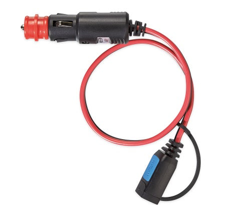 The 12V cigarette lighter plug, with 16A fuse, is an accessory for the Blue Smart IP65 Charger with DC connector. With this plug you can charge your vehicle battery via the cigarette lighter socket.