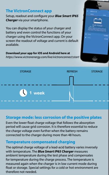 The ‘VictronConnect’ app Setup, readout and configure your Blue Smart IP65 Charger via your smartphone.