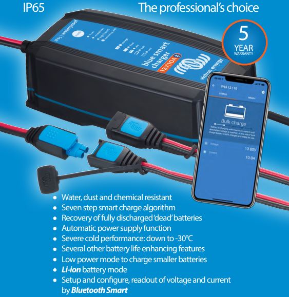 The Blue Smart IP65 Charger is the new professional battery charger with built-in Bluetooth and can be used on devices in your workshop and on motor vehicles, such as (classic) cars, motorbikes, trucks, boats and campervans/caravans.