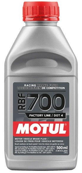MOTUL RBF 700 is a high-performance brake fluid developed to offer highly consistent and maximum braking power at extreme brake temperatures generated by carbon and ceramic racing brake discs systems. Allows to minimize air vents of the brakes thus improving aerodynamic drag.