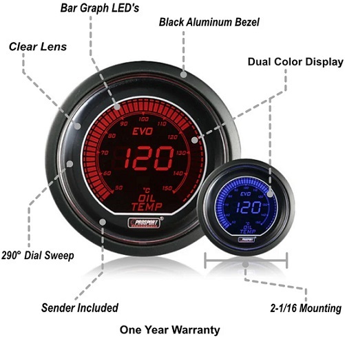 PROSPORT EVO ELECTRONIC OIL TEMPERATURE GAUGE 52mm CELSIUS