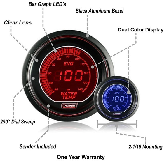 PROSPORT EVO ELECTRONIC WATER TEMPERATURE GAUGE 52mm CELSIUS