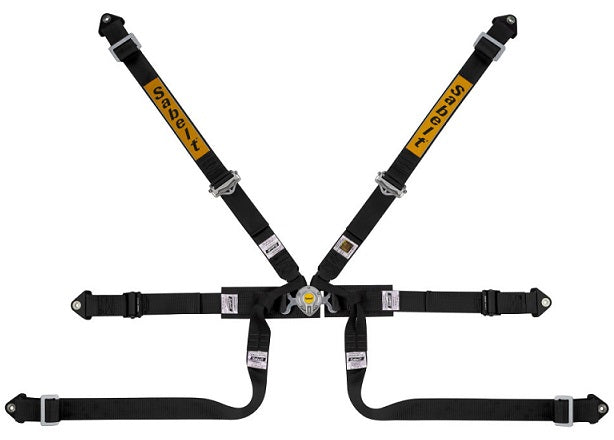 The Sabelt lightweight formula 6 point harness has 2″ wide shoulder straps which allow a more precise fit to an FHR / HANS device. Lap straps are also 2″ wide and feature a 3″ wide load spreader pad for better improved comfort. Lap strap adjustment is a pull up type for ease of use. The release buckle is a new compact design with reduced weight.