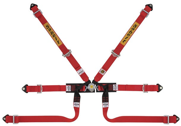 The Sabelt lightweight formula 6 point harness has 2″ wide shoulder straps which allow a more precise fit to an FHR / HANS device. Lap straps are also 2″ wide and feature a 3″ wide load spreader pad for better improved comfort. Lap strap adjustment is a pull up type for ease of use. The release buckle is a new compact design with reduced weight.