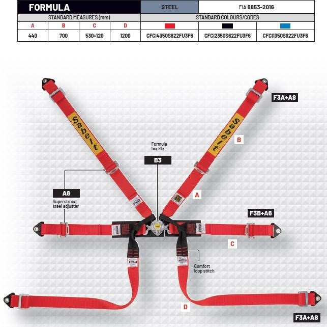 * Short shoulder and lap straps specific for single seater / formula cars.