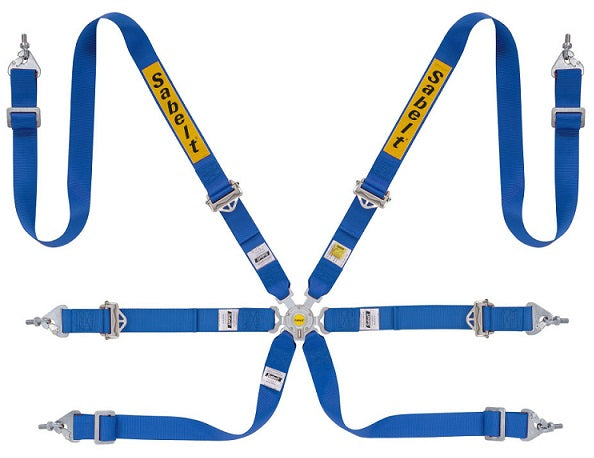 SABELT is the 1st company to produce a harness to the achieve the latest FIA8853-2016 standard. This SALOON harness is an ultra lightweight professional 6 point harness in 2″ webbing with Forged and Anodized Aluminium quick adjusters and pull up lap belts.