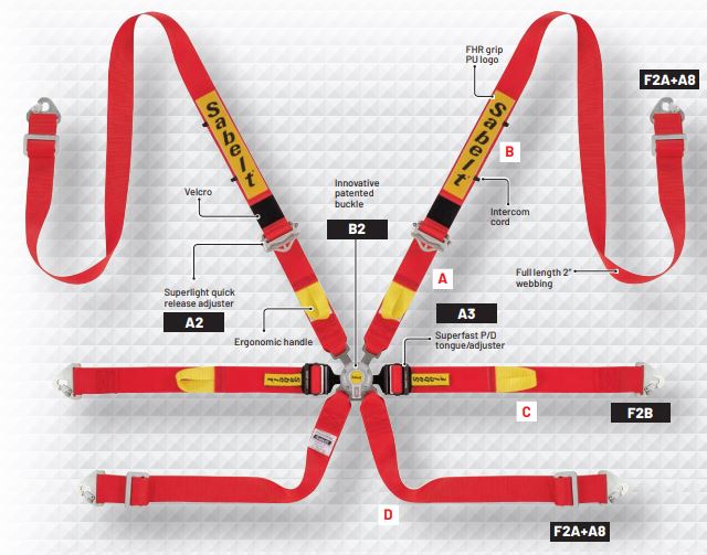 The Sabelt Silver Endurance is a GT / Saloon 6 point harness with Specific FHR Hans Device 2″ shoulder belts which has been developed to offer the easiest and fastest method of ‘buckling up’ and adjusting. This makes it perfect for endurance races where driver changes occur.